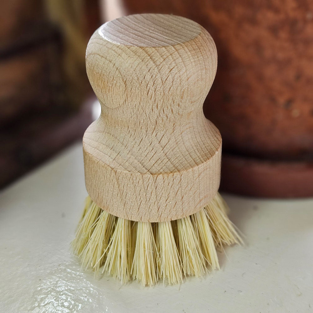 Wooden vegetable brush, a round natural brush, perfect for use as a vegetable scrubbing brush but also a useful pot brush. With a round tactile wooden top and natural bristles, this household brush is a great alternative to plastic cleaning products and offers a durable and eco friendly brush that is also highly effective. I also use this brush for cleaning water buckets outside- it is highly effective at removing dirt from the base of the bucket!