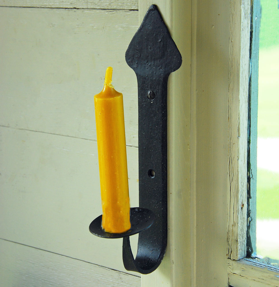Hand made from forged iron. Flat black gothic style with simple round candle plate suitable for a small pillar or short dinner candle.