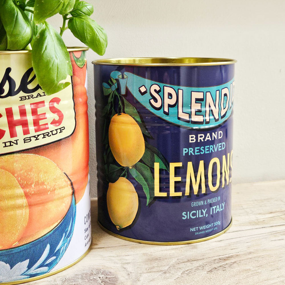 The Splendid Lemons herb pot and cutlery holder will add colour to your kitchen. Use as a windowsill herb planter or a kitsch cutlery holder. Either way this vintage style tin can will add interest to the kitchen windowsill, shelves or work surface. Our range of storage tins make a great pen pot or desk tidy. We love the design of this preserved lemons tin, based on an original Italian brand.