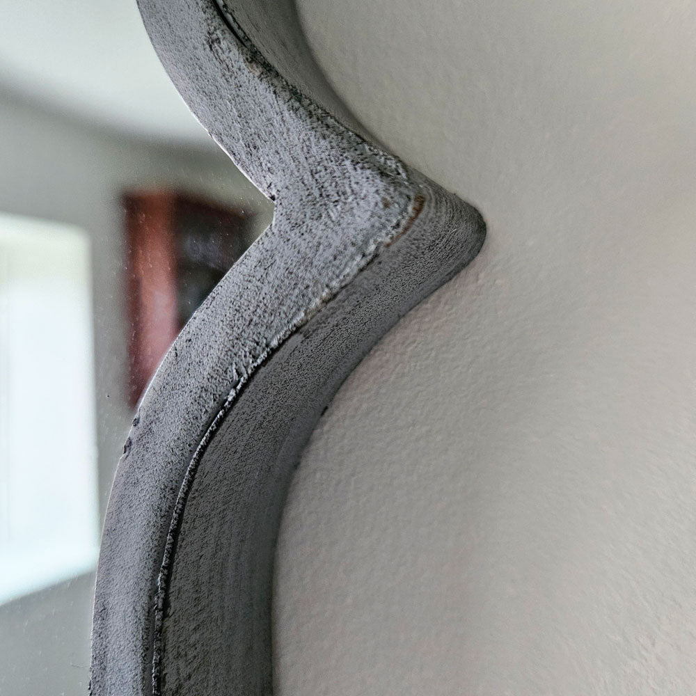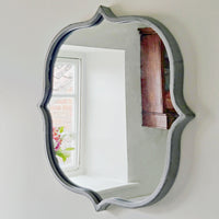 The Tangier dark grey metal wall mirror is a small wall mirror. An ideal bathroom mirror, the pleasingly shaped grey mirror is inspired by a Moroccan mirror and is both simple and eye catching, adding interest to any setting. Scallop mirrors also work well as a bedroom mirror and this small metal mirror is the perfect addition to a guest bedroom or bathroom. Crafted from metal, the resulting style will work well with both contemporary and traditional design. Straightforward to hang on the single keyhole fitting using a single screwhead, (screw not included).