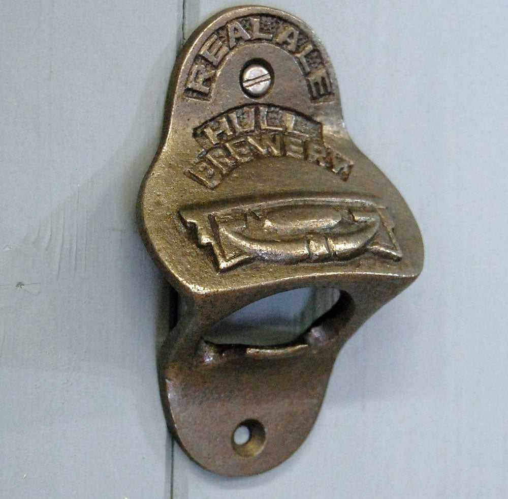 Wall mounted metal bottle opener vintage Hull Brewery design